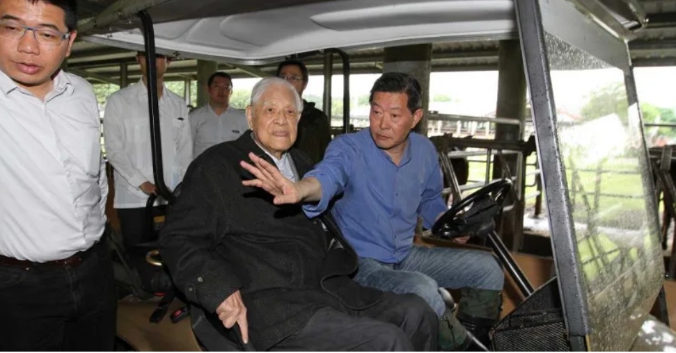 故前總統李登輝至花蓮兆豐農場,視察源興牛飼育情況。(圖/報系資料)